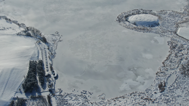 Kent merkezinden 41 km uzaklıkta bulunan Hafik Gölü, 2 kilometrelik mesafeden dronlar aracılığıyla havadan görüntülendi. Gölün yüzeyi tamamen donmuştu.